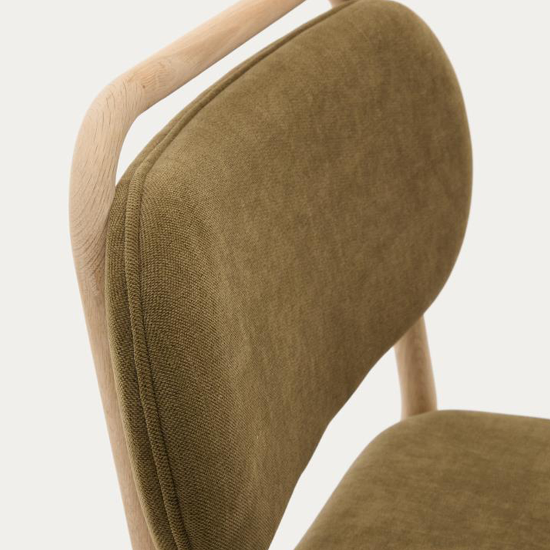 La butaca Helda combina un diseño elegante con un tapizado en chenilla verde, aportando confort y un toque de color sofisticado. Sus patas y estructura en madera maciza de roble aportan solidez y calidez natural al conjunto. La combinación de texturas suaves y materiales nobles crea un equilibrio estético contemporáneo. Una pieza de diseño versátil, perfecta para añadir estilo y confort a cualquier espacio.