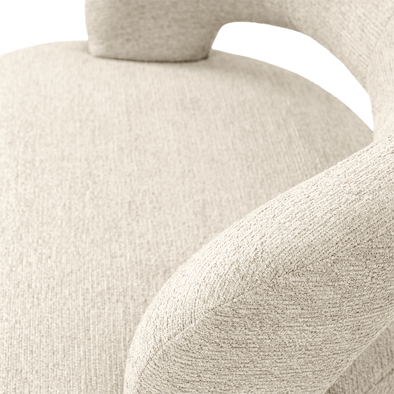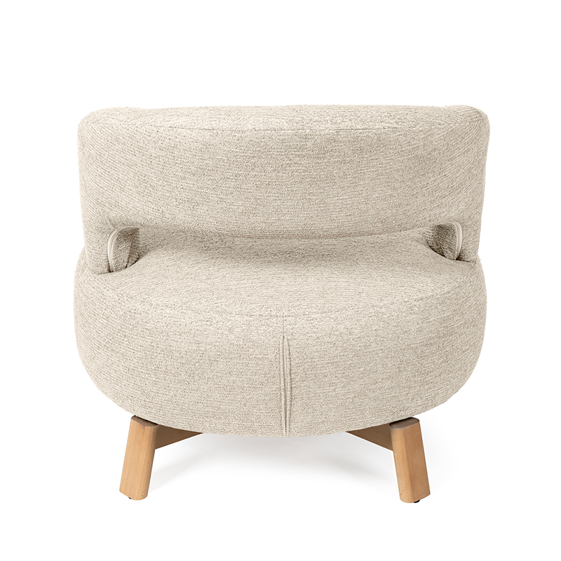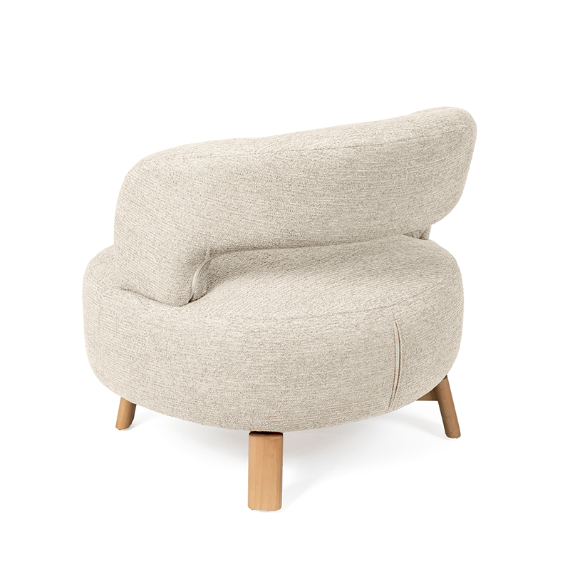 La butaca GOTA conquista por su diseño fresco y actual, sus patas de madera de haya elevan la estructura con un sutil contraste natural, aportando estabilidad y un toque orgánico al conjunto. Además, cuenta con un mecanismo giratorio de 360°, que añade comodidad y funcionalidad, ideal para adaptarse a distintos usos y momentos del día.