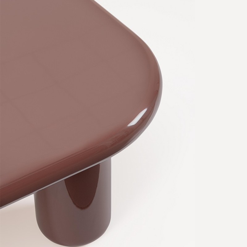 La mesa de centro de 120 cm destaca por su diseño equilibrado y líneas suaves. El acabado en tono burdeos aporta profundidad y un acento cromático sofisticado. Sus cuatro patas redondas refuerzan la sensación de solidez y armonía visual. Los cantos curvos del sobre suavizan la pieza, aportando fluidez y elegancia al conjunto.