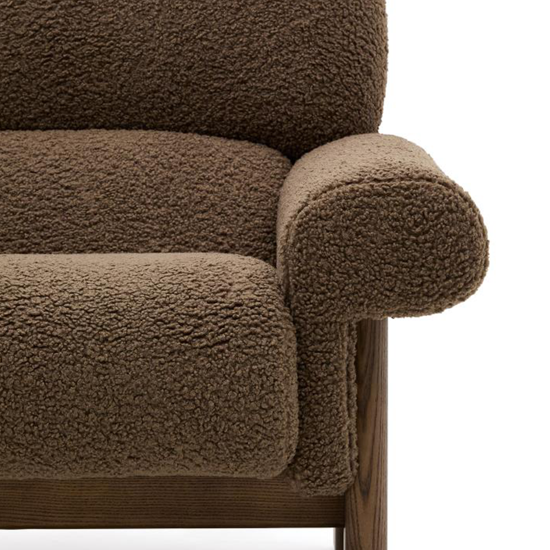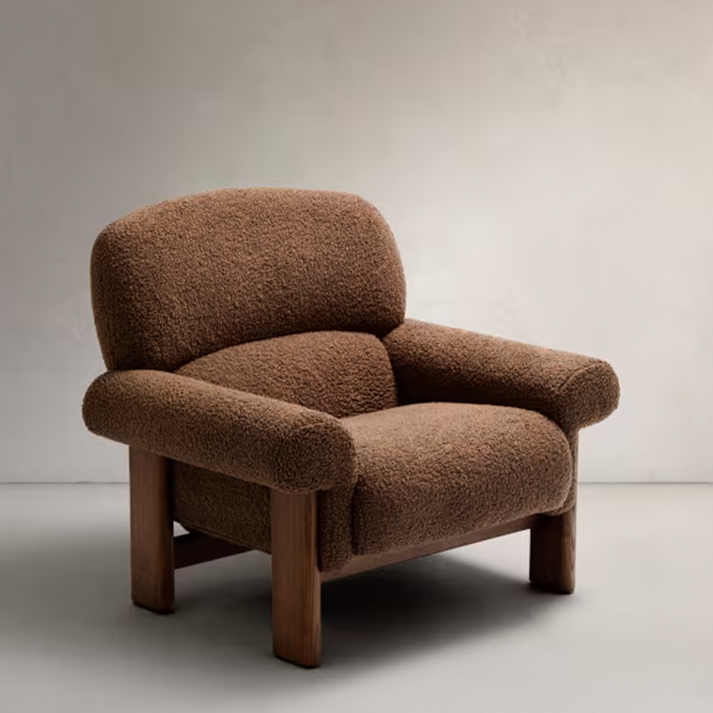 La butaca Nemo destaca por su tapizado en borreguito color topo, aportando una textura envolvente y una sensación de confort visual. Sus patas de madera maciza de fresno con acabado nogal aportan calidez y un carácter sofisticado al diseño. Fabricada con madera FSC 100%, refleja un compromiso con la sostenibilidad y el diseño responsable. Una pieza de diseño contemporáneo que combina estética, funcionalidad y materiales de alta calidad.
