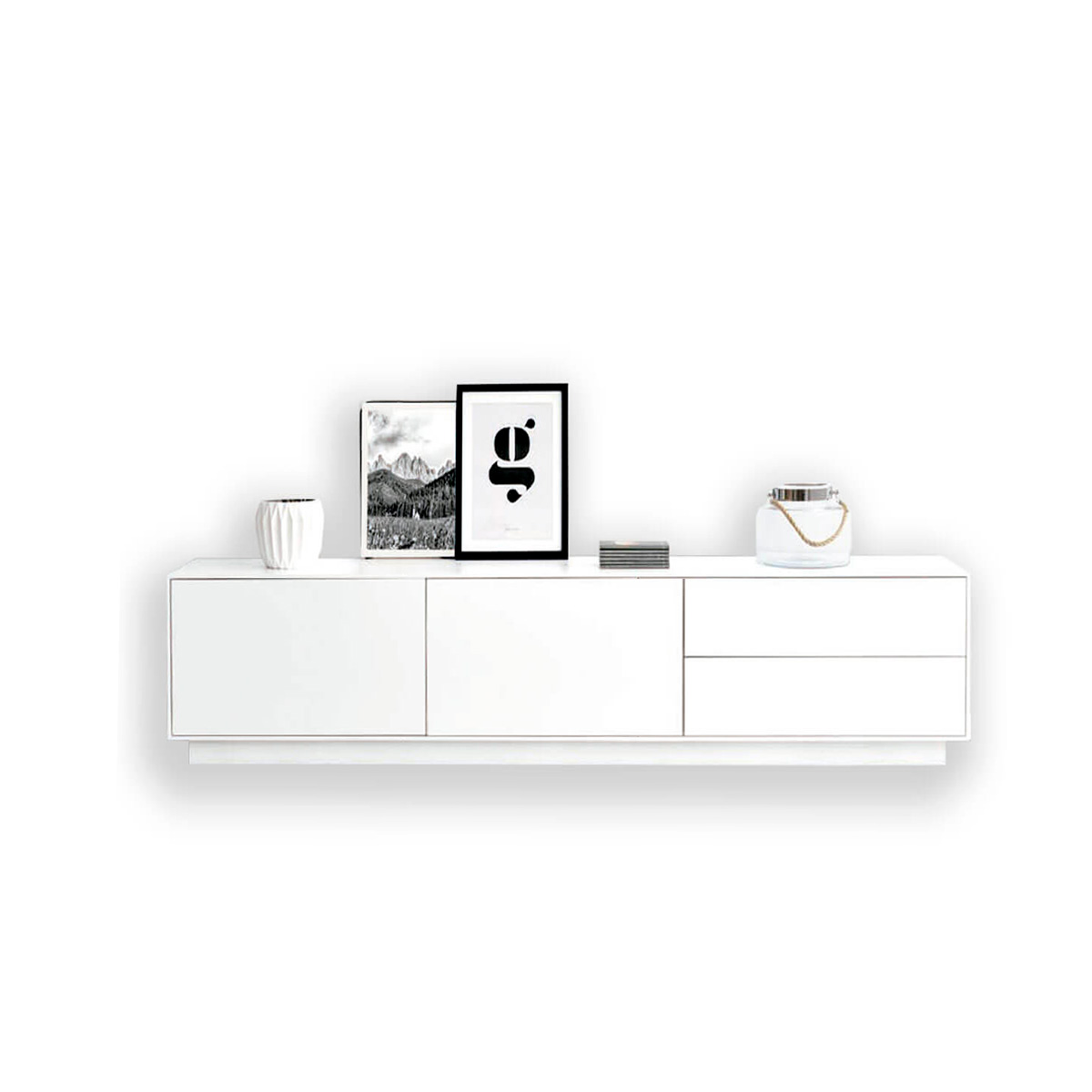 PRODUCTO PERSONALIZADO: Mueble TV 180cm lacado blanco mate. IMPORTANTE: Revise las características del producto, y compruebe las medidas y acabados antes de realizar el pedido. Recuerde que los tonos son digitales, pueden sufrir variaciones con la realidad, cualquier duda contacte con nosotros. Los productos personalizados no tienen cambio ni devolución por motivos estéticos, consulte nuestras condiciones https://artikalia.com/politica-privacidad/